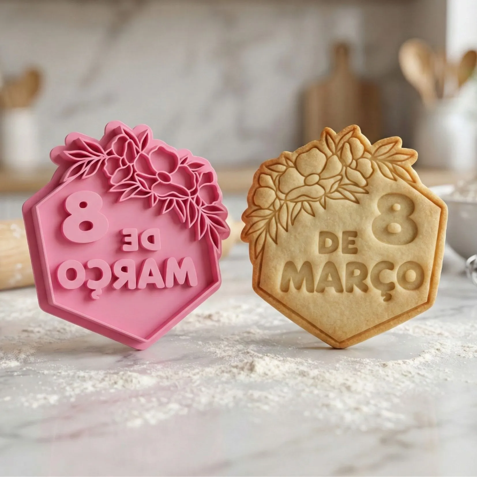 Kit Cortador + Carimbo com pegador traseiro para facilitar o uso. Produzido em PLA biodegradável com acabamento premium para cortes precisos. Perfeito para biscoitos, pasta americana, massinha e artesanato.