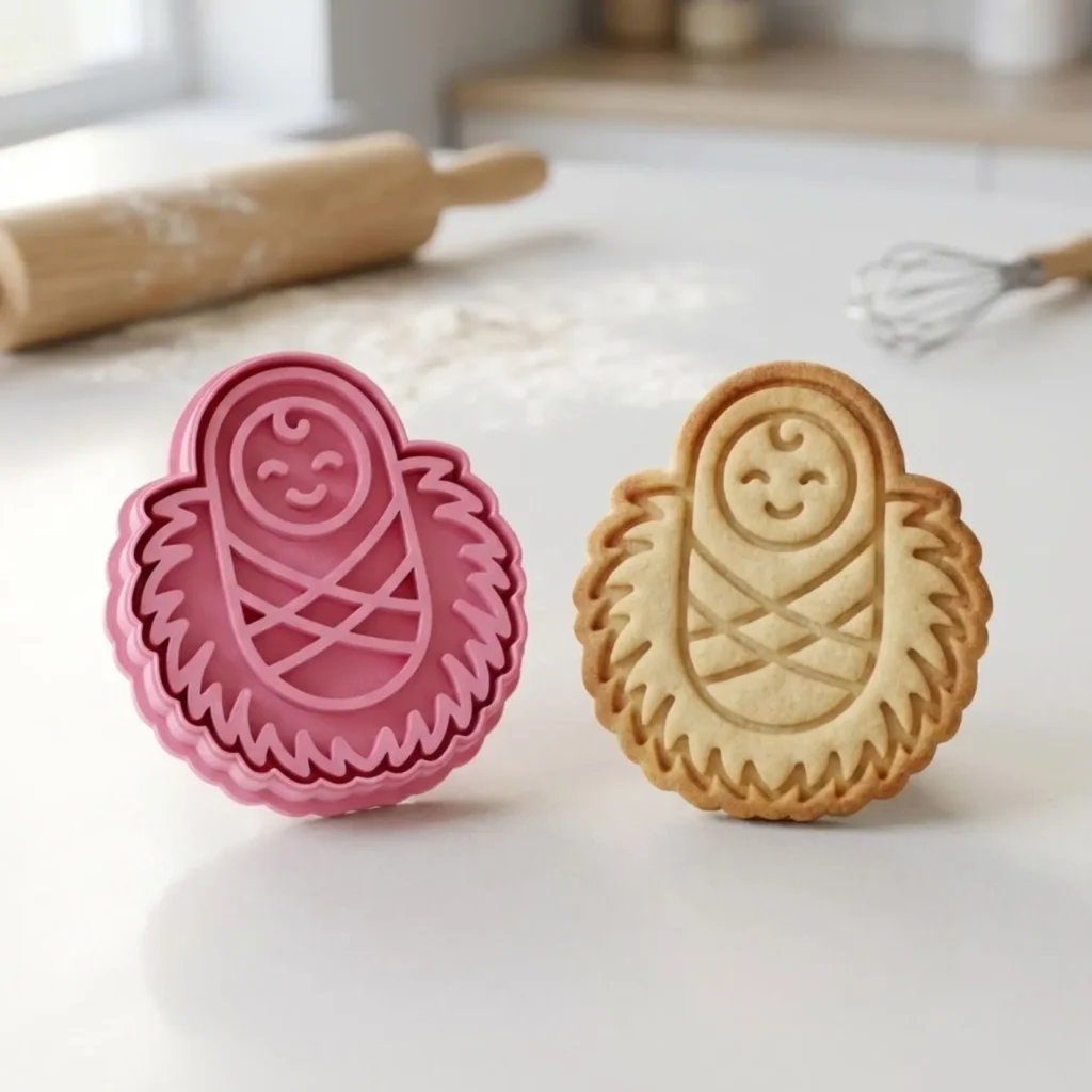 Kit Cortador + Carimbo com pegador traseiro para facilitar o uso. Produzido em PLA biodegradável com acabamento premium para cortes precisos. Perfeito para biscoitos, pasta americana, massinha e artesanato.