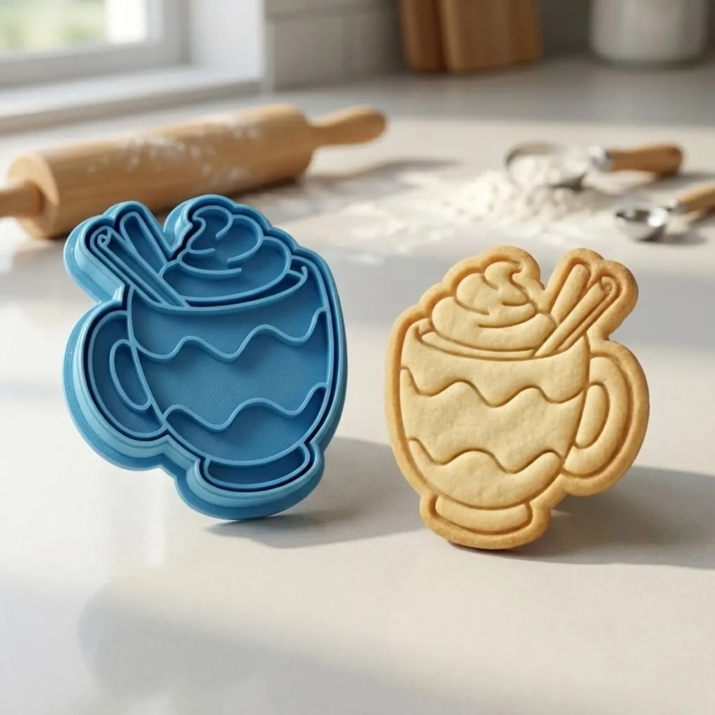 Kit Cortador + Carimbo com pegador traseiro para facilitar o uso. Produzido em PLA biodegradável com acabamento premium para cortes precisos. Perfeito para biscoitos, pasta americana, massinha e artesanato.