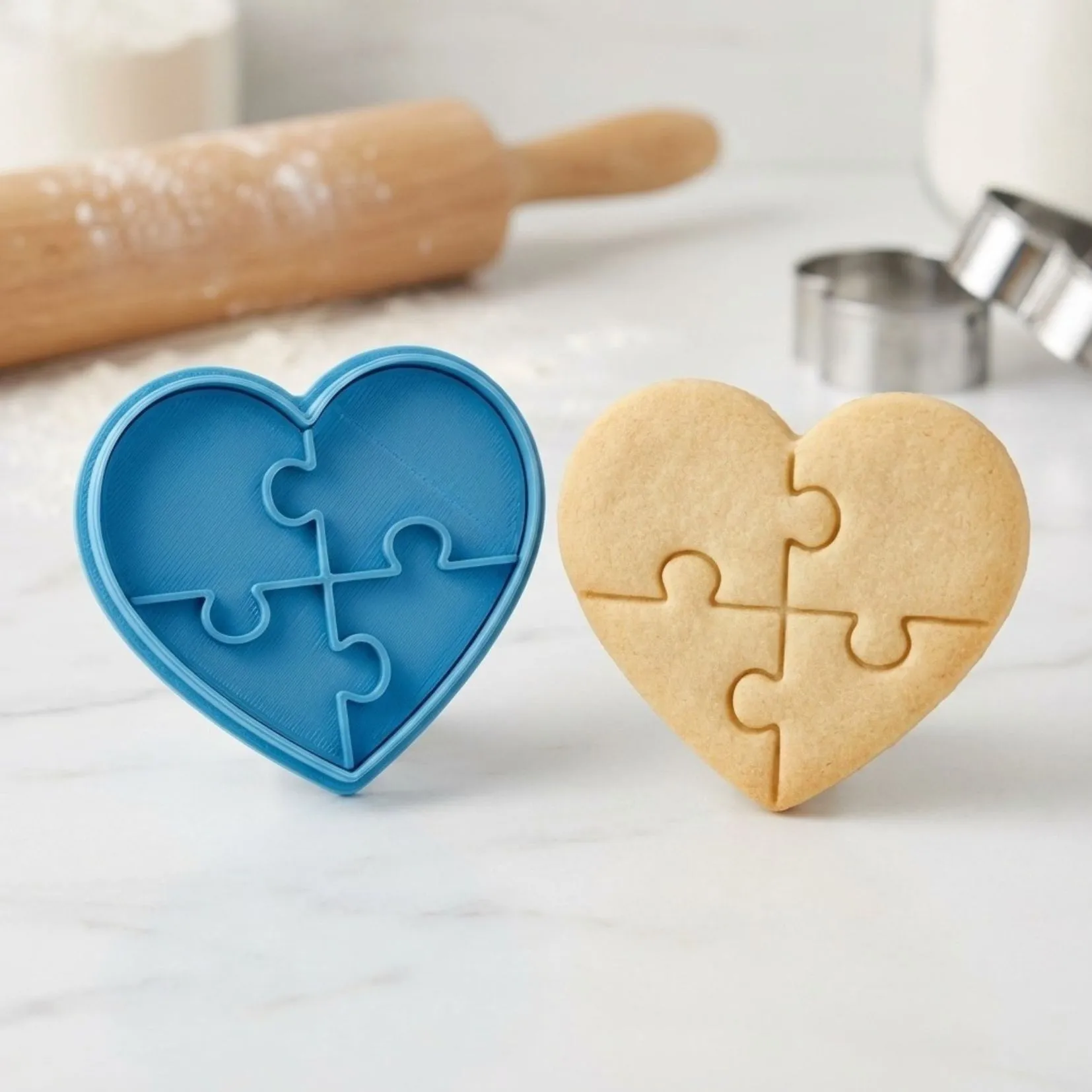 Kit Cortador + Carimbo com pegador traseiro para facilitar o uso. Produzido em PLA biodegradável com acabamento premium para cortes precisos. Perfeito para biscoitos, pasta americana, massinha e artesanato.