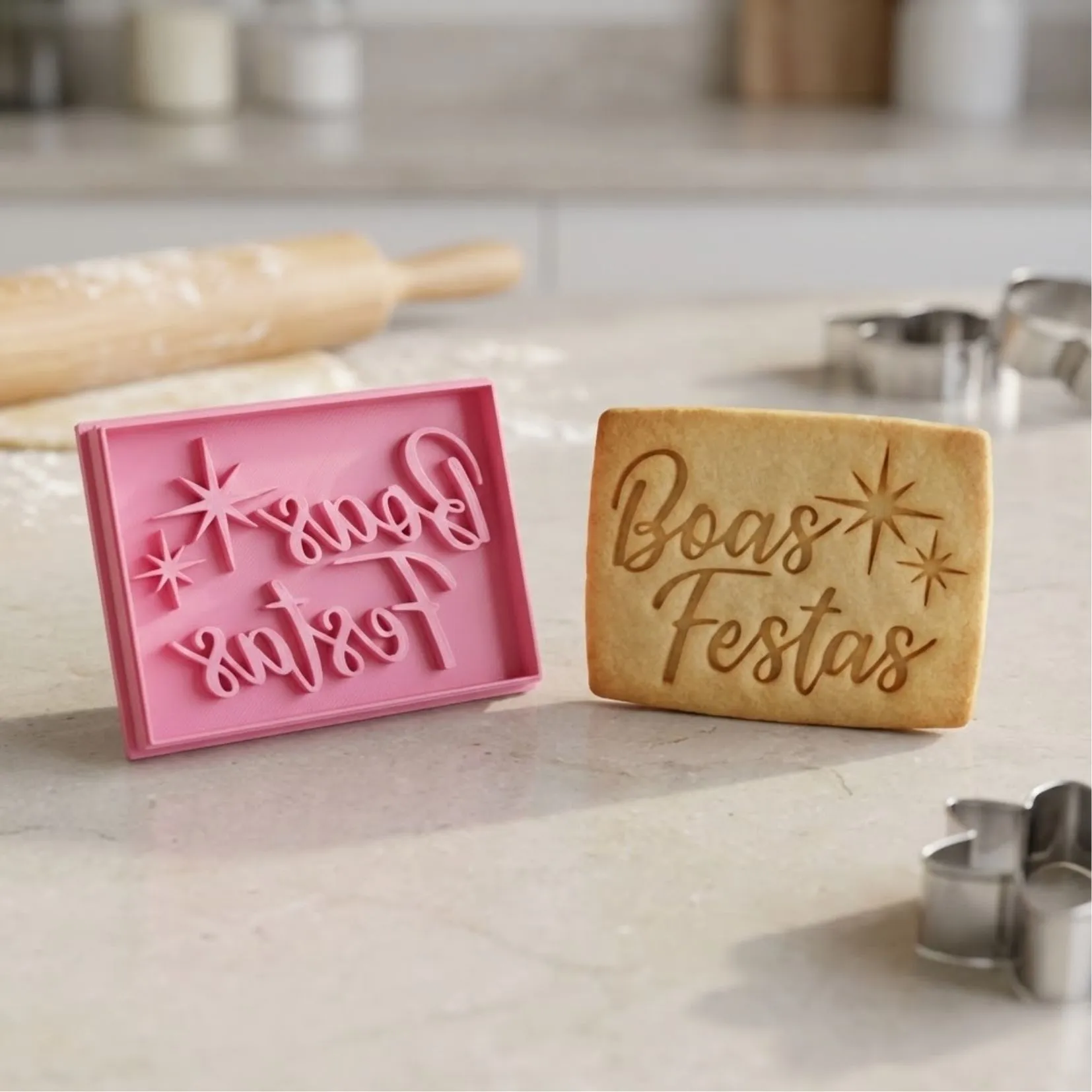 Kit Cortador + Carimbo com pegador traseiro para facilitar o uso. Produzido em PLA biodegradável com acabamento premium para cortes precisos. Perfeito para biscoitos, pasta americana, massinha e artesanato.