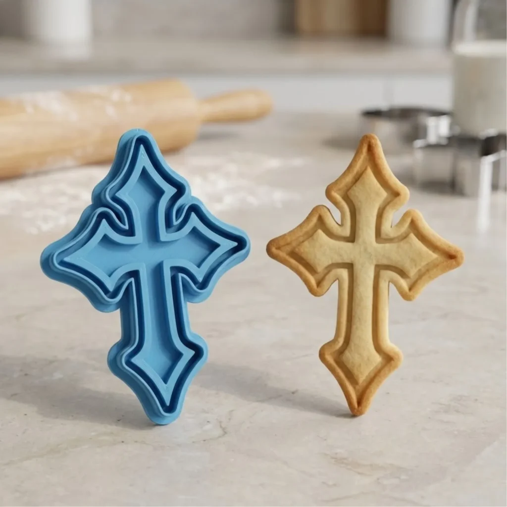 Kit Cortador + Carimbo com pegador traseiro para facilitar o uso. Produzido em PLA biodegradável com acabamento premium para cortes precisos. Perfeito para biscoitos, pasta americana, massinha e artesanato.
