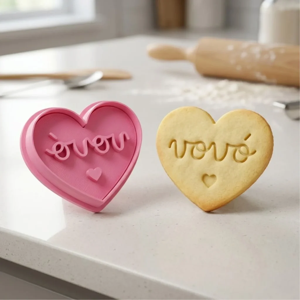 Kit Cortador + Carimbo com pegador traseiro para facilitar o uso. Produzido em PLA biodegradável com acabamento premium para cortes precisos. Perfeito para biscoitos, pasta americana, massinha e artesanato.