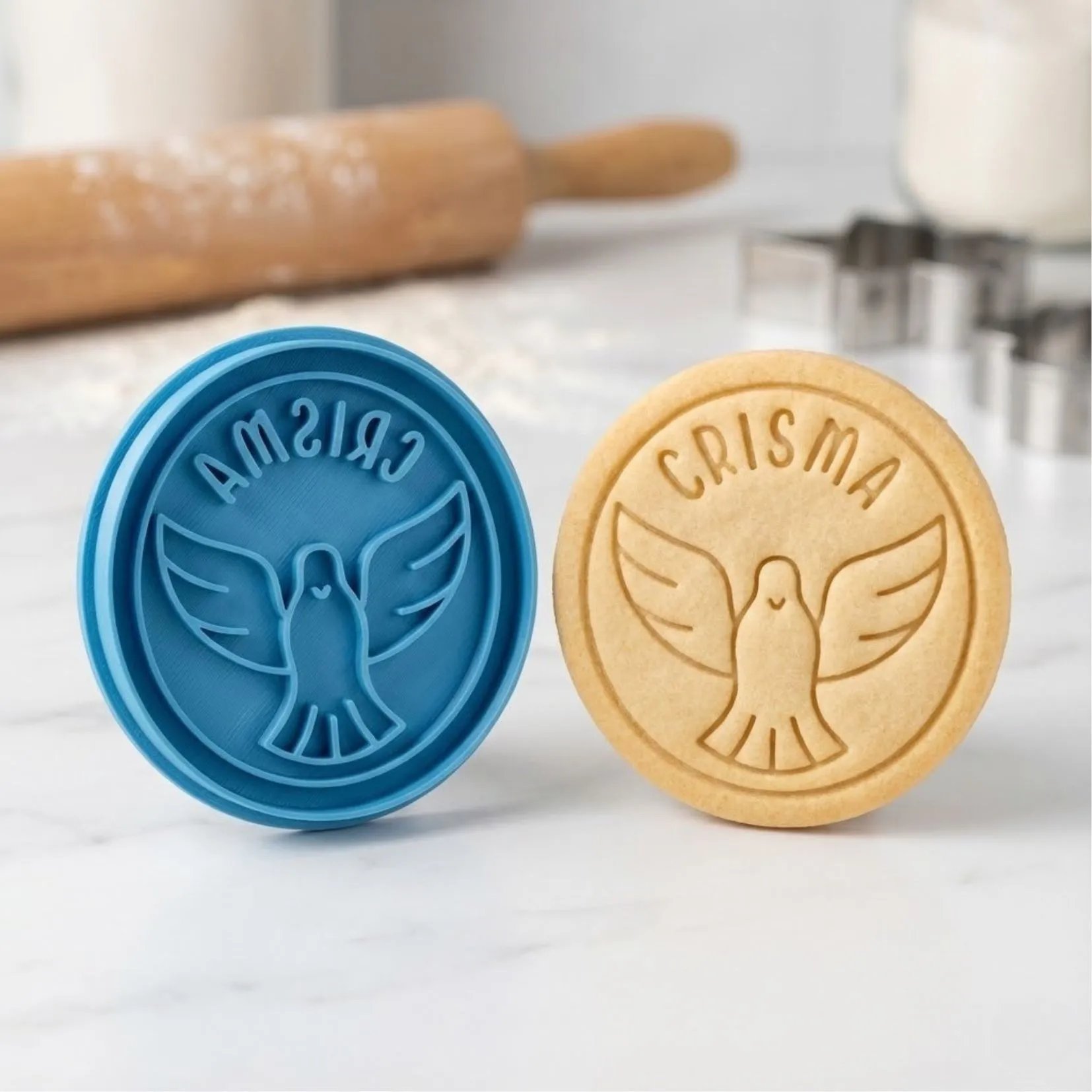 Kit Cortador + Carimbo com pegador traseiro para facilitar o uso. Produzido em PLA biodegradável com acabamento premium para cortes precisos. Perfeito para biscoitos, pasta americana, massinha e artesanato.