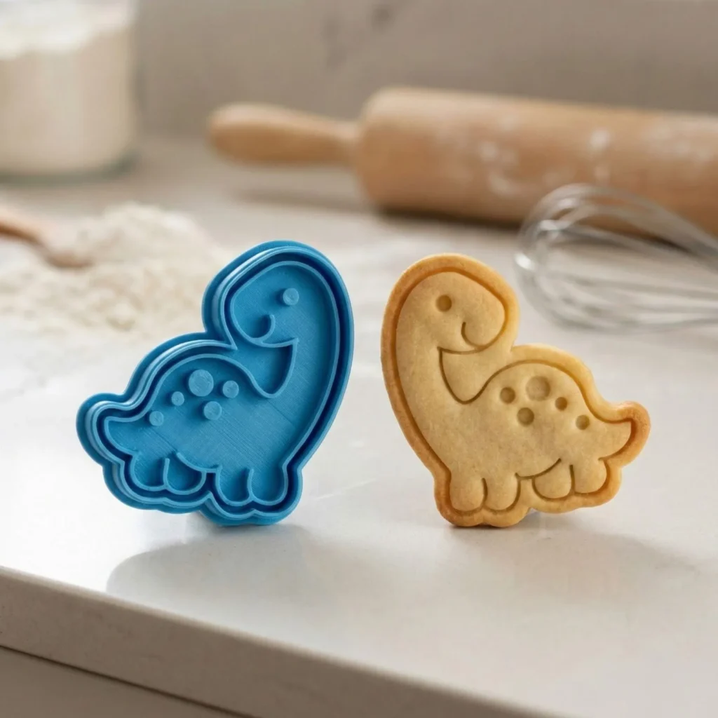 Kit Cortador + Carimbo com pegador traseiro para facilitar o uso. Produzido em PLA biodegradável com acabamento premium para cortes precisos. Perfeito para biscoitos, pasta americana, massinha e artesanato.
