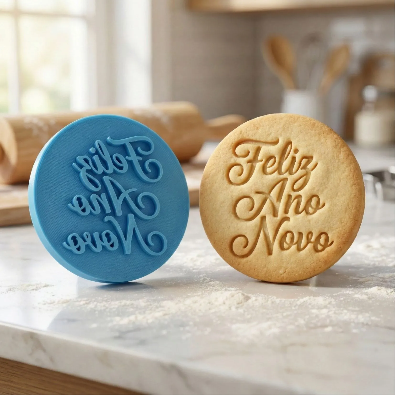 Kit Cortador + Carimbo com pegador traseiro para facilitar o uso. Produzido em PLA biodegradável com acabamento premium para cortes precisos. Perfeito para biscoitos, pasta americana, massinha e artesanato.