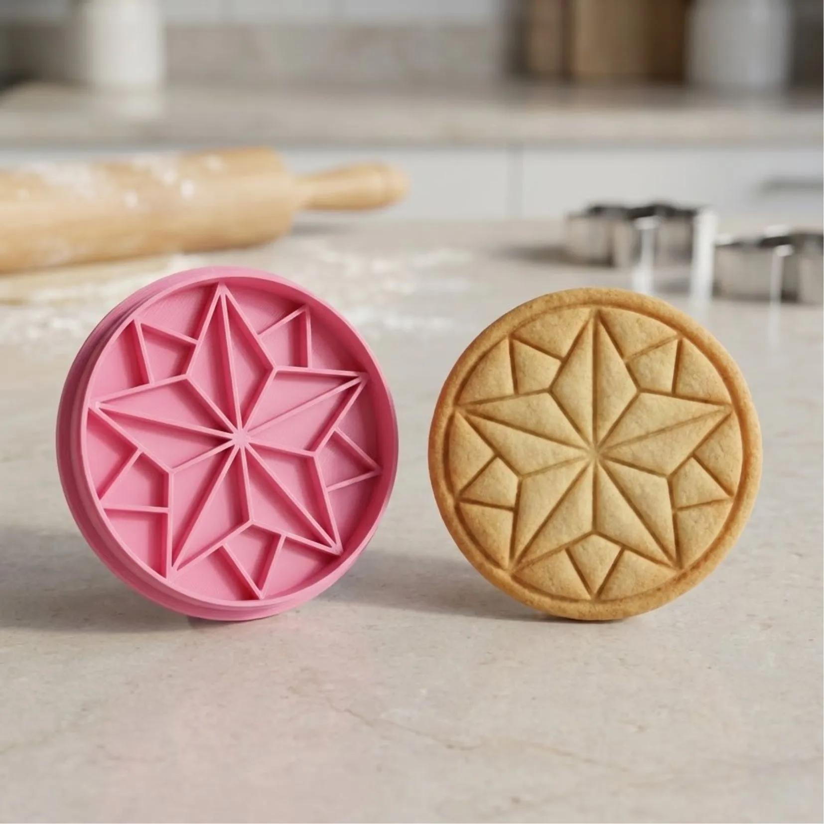 Kit Cortador + Carimbo com pegador traseiro para facilitar o uso. Produzido em PLA biodegradável com acabamento premium para cortes precisos. Perfeito para biscoitos, pasta americana, massinha e artesanato.