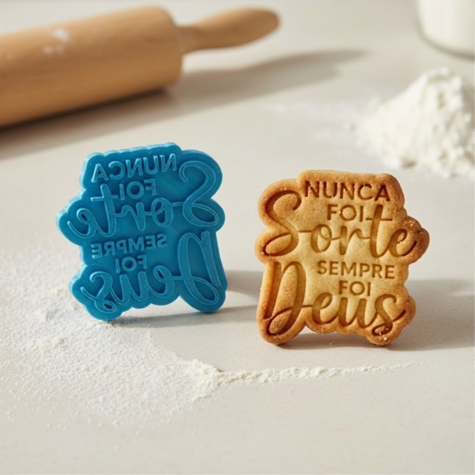 Kit Cortador + Carimbo com pegador traseiro para facilitar o uso. Produzido em PLA biodegradável com acabamento premium para cortes precisos. Perfeito para biscoitos, pasta americana, massinha e artesanato.