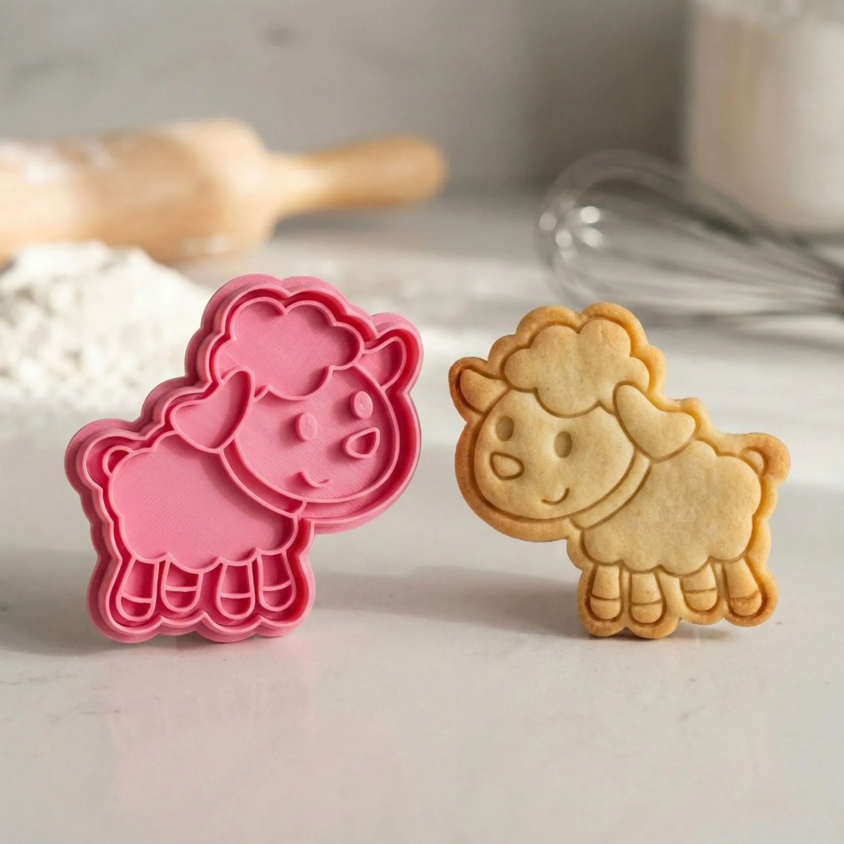 Kit Cortador + Carimbo com pegador traseiro para facilitar o uso. Produzido em PLA biodegradável com acabamento premium para cortes precisos. Perfeito para biscoitos, pasta americana, massinha e artesanato.