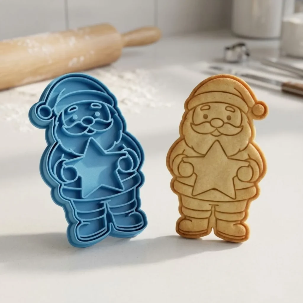 Kit Cortador + Carimbo com pegador traseiro para facilitar o uso. Produzido em PLA biodegradável com acabamento premium para cortes precisos. Perfeito para biscoitos, pasta americana, massinha e artesanato.