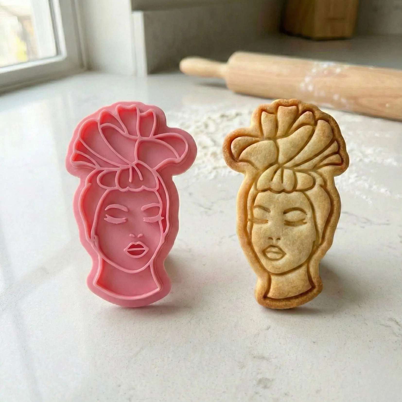 Kit Cortador + Carimbo com pegador traseiro para facilitar o uso. Produzido em PLA biodegradável com acabamento premium para cortes precisos. Perfeito para biscoitos, pasta americana, massinha e artesanato.