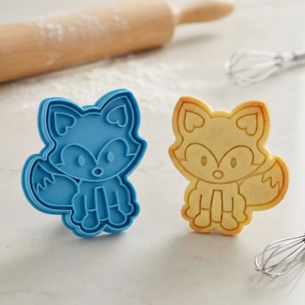 Kit Cortador + Carimbo com pegador traseiro para facilitar o uso. Produzido em PLA biodegradável com acabamento premium para cortes precisos. Perfeito para biscoitos, pasta americana, massinha e artesanato.