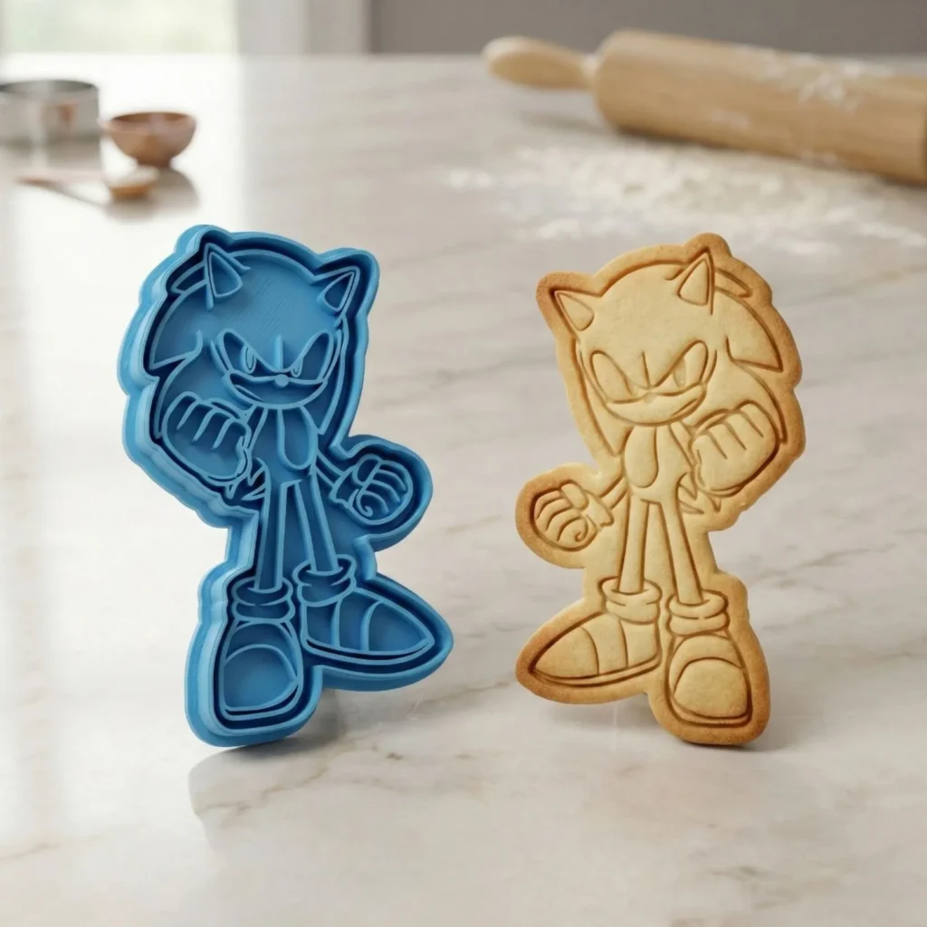 Kit Cortador + Carimbo com pegador traseiro para facilitar o uso. Produzido em PLA biodegradável com acabamento premium para cortes precisos. Perfeito para biscoitos, pasta americana, massinha e artesanato.