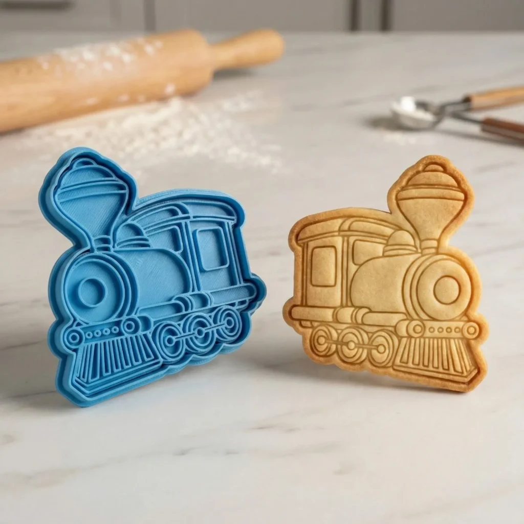 Kit Cortador + Carimbo com pegador traseiro para facilitar o uso. Produzido em PLA biodegradável com acabamento premium para cortes precisos. Perfeito para biscoitos, pasta americana, massinha e artesanato.