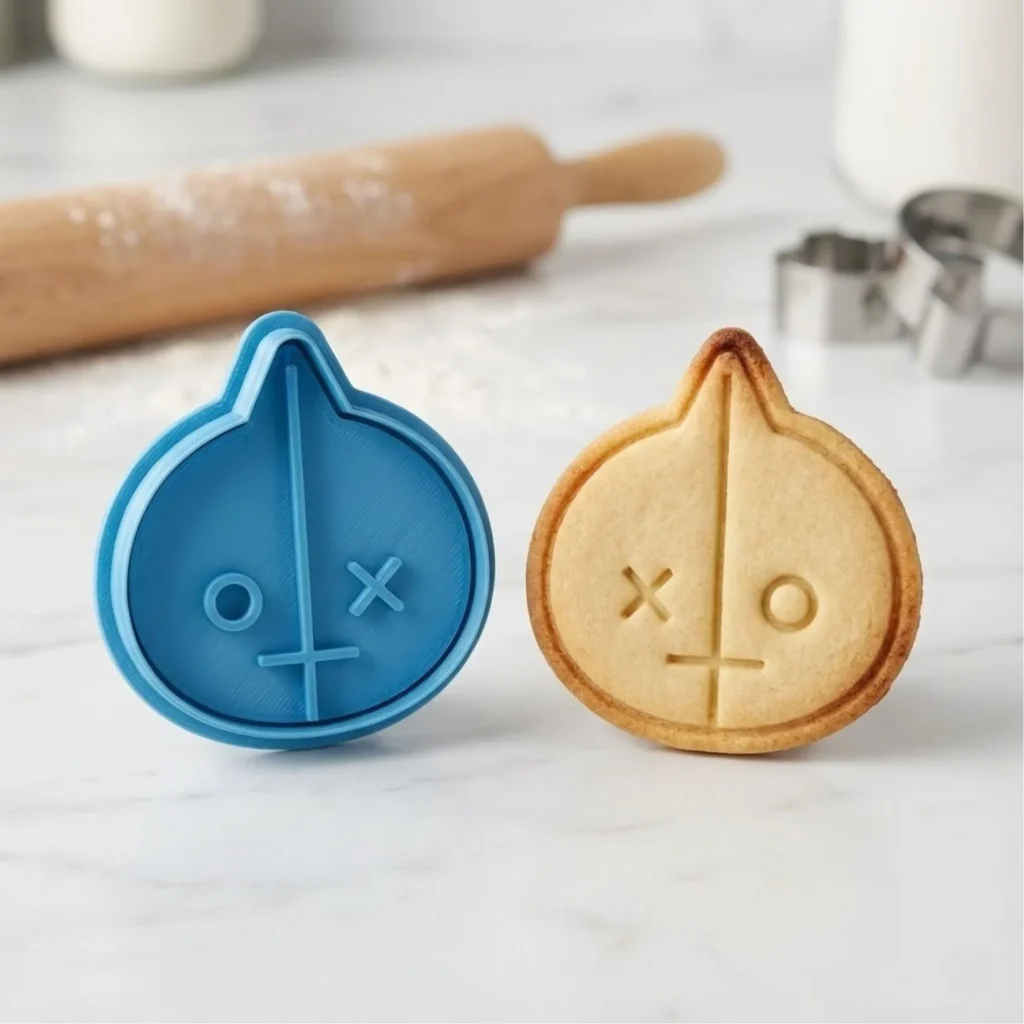 Kit Cortador + Carimbo com pegador traseiro para facilitar o uso. Produzido em PLA biodegradável com acabamento premium para cortes precisos. Perfeito para biscoitos, pasta americana, massinha e artesanato.